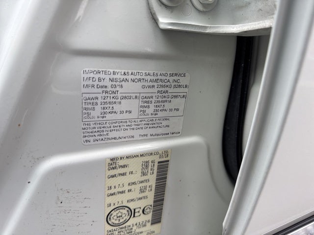 White 2018 Nissan Murano SV